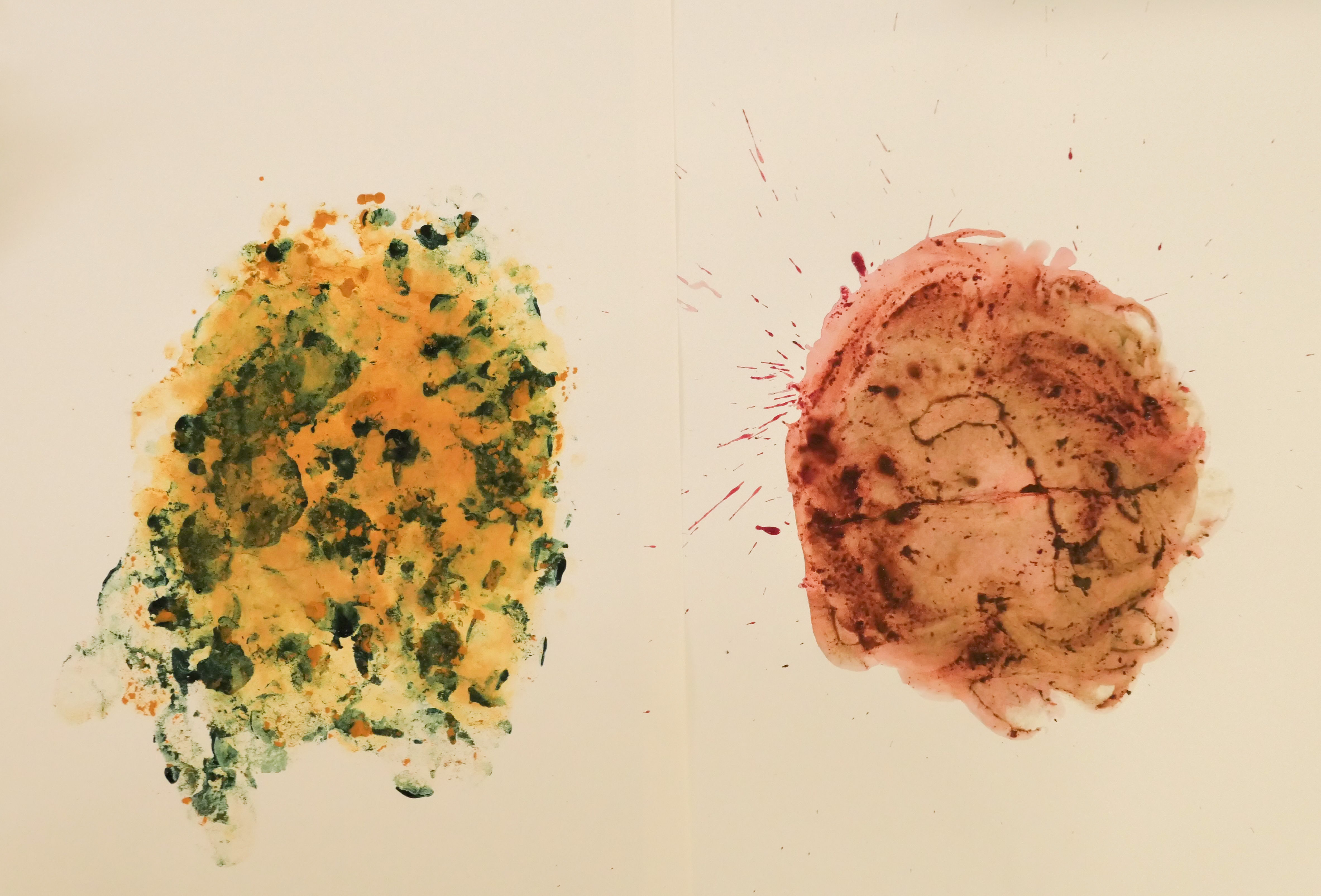 ︎︎︎ year: 2021︎︎︎ medium: natural food paste on paper (made from turmeric, spirulina, beets)