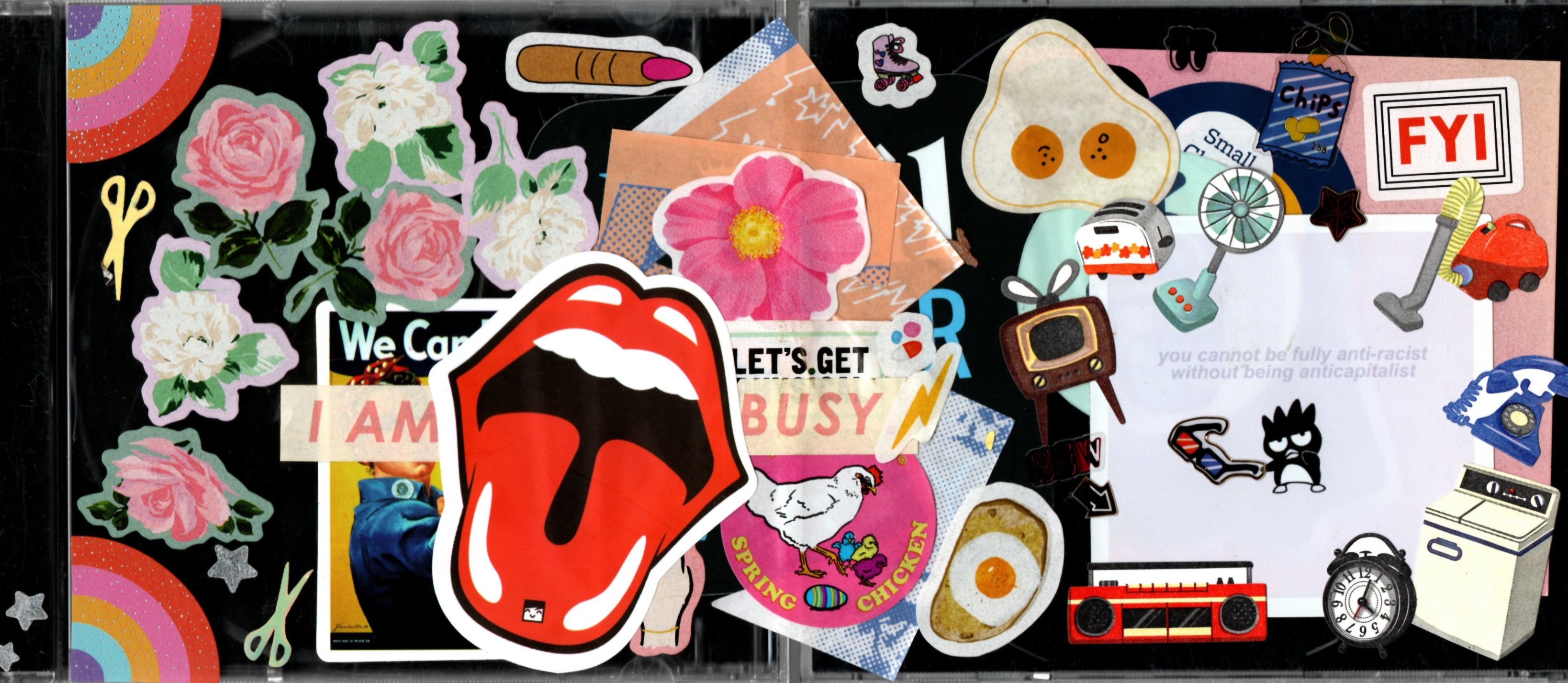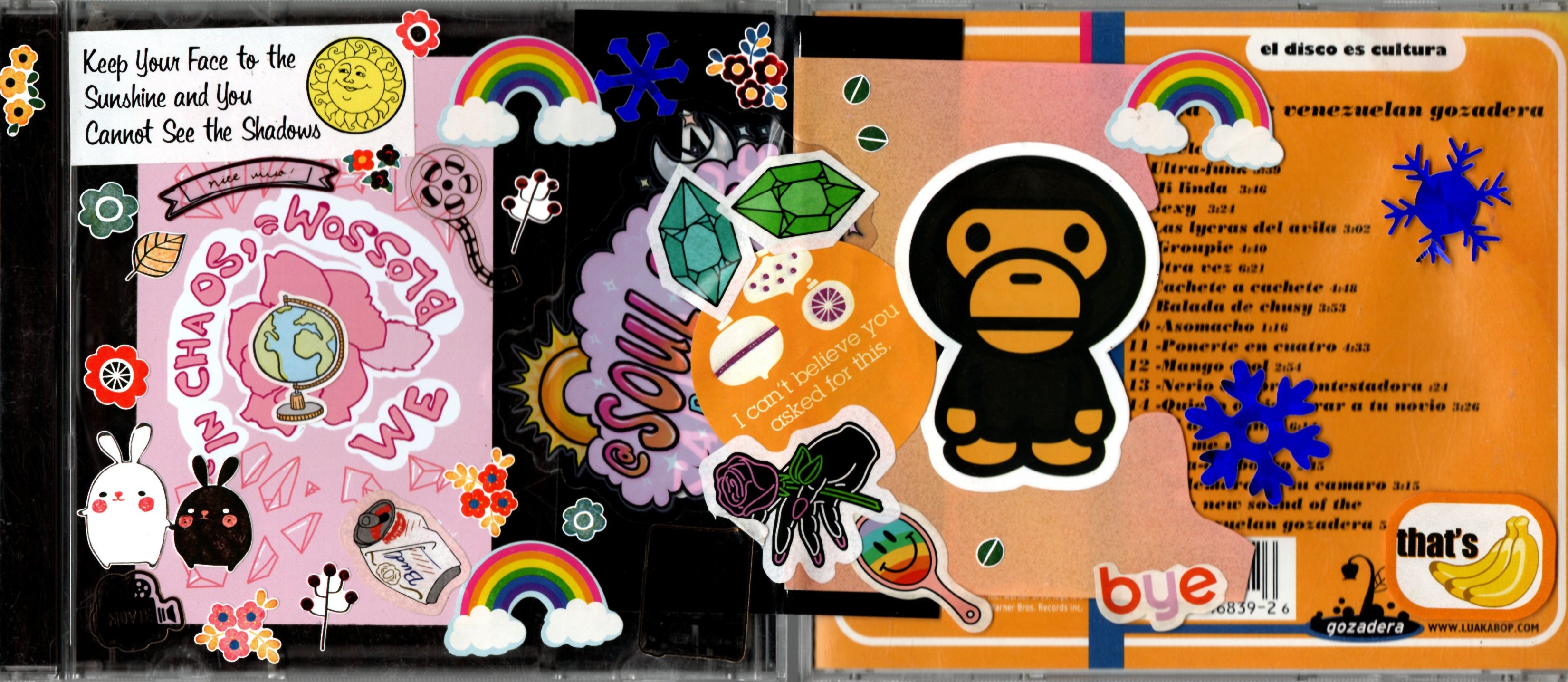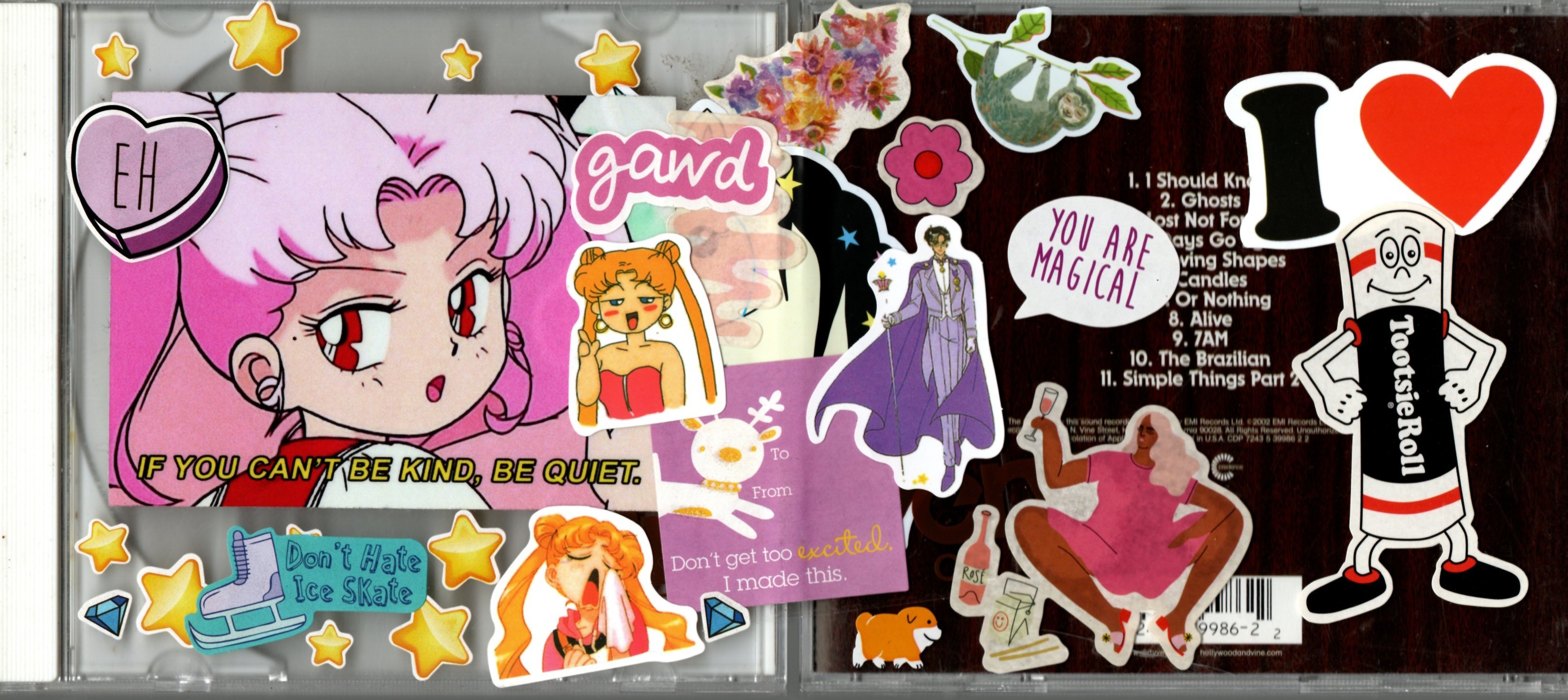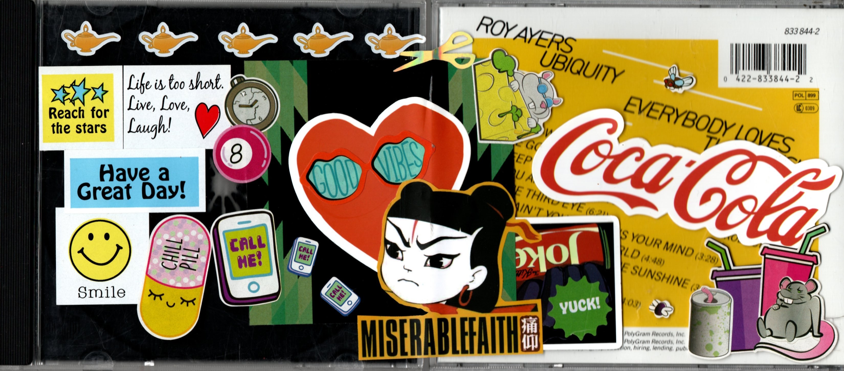 ︎︎︎ year: 2022︎︎︎ medium: stickers, cd cases, old ihome media player from my teenage