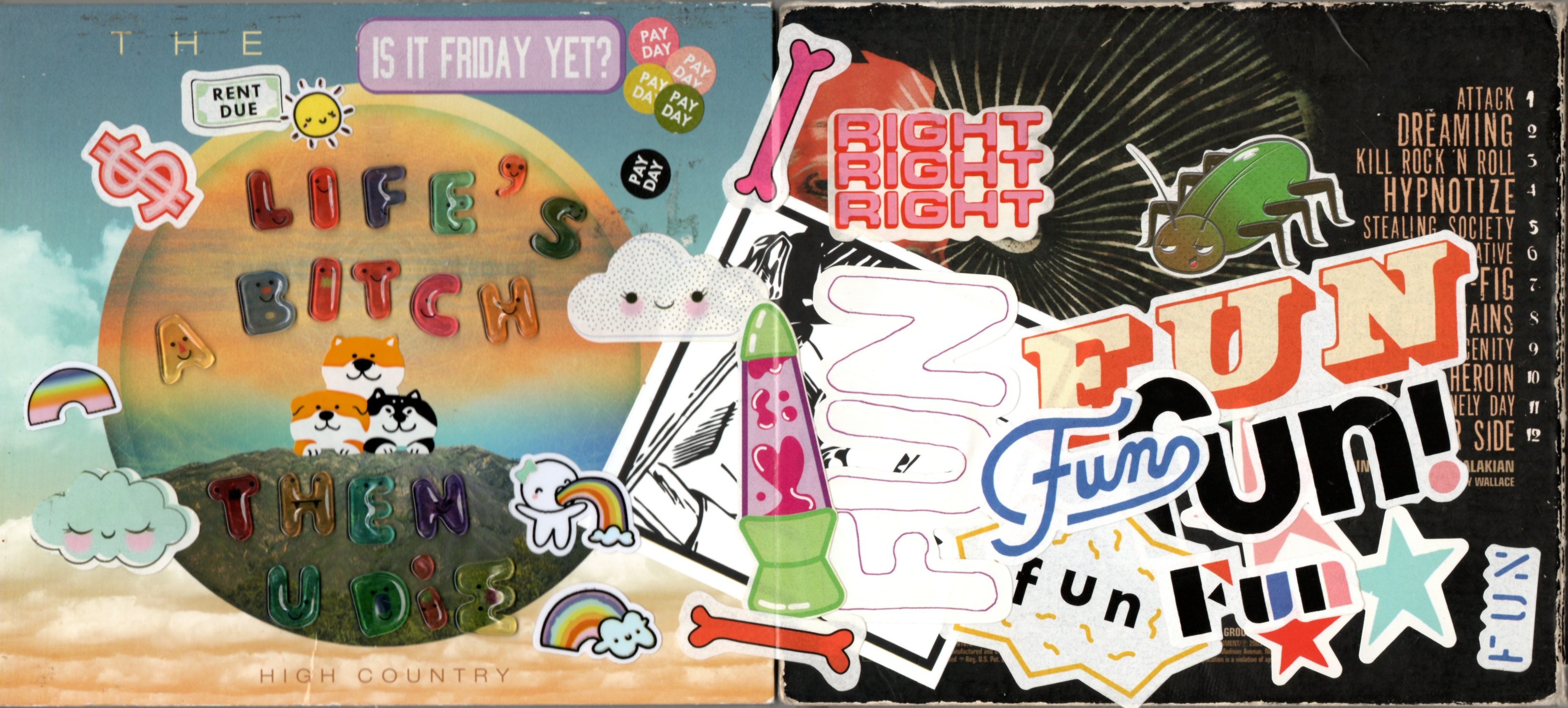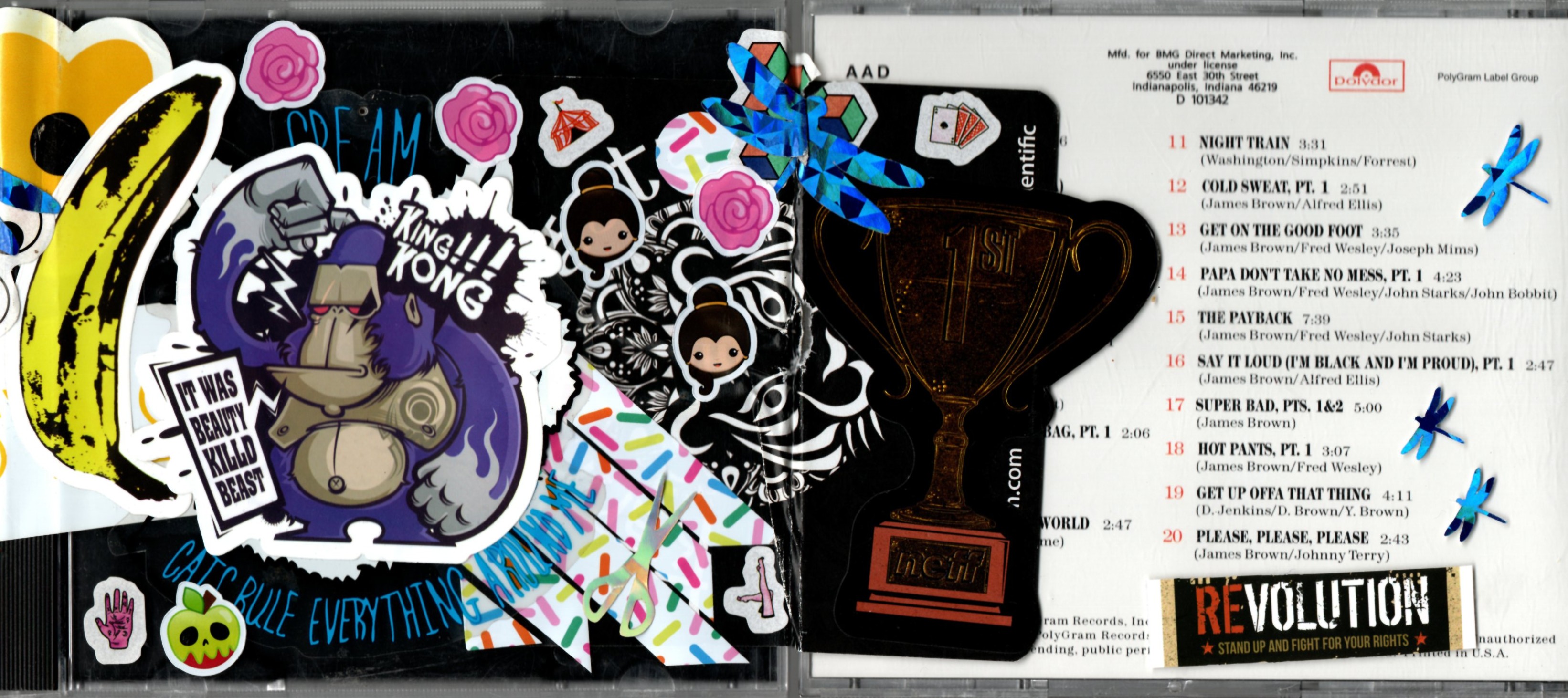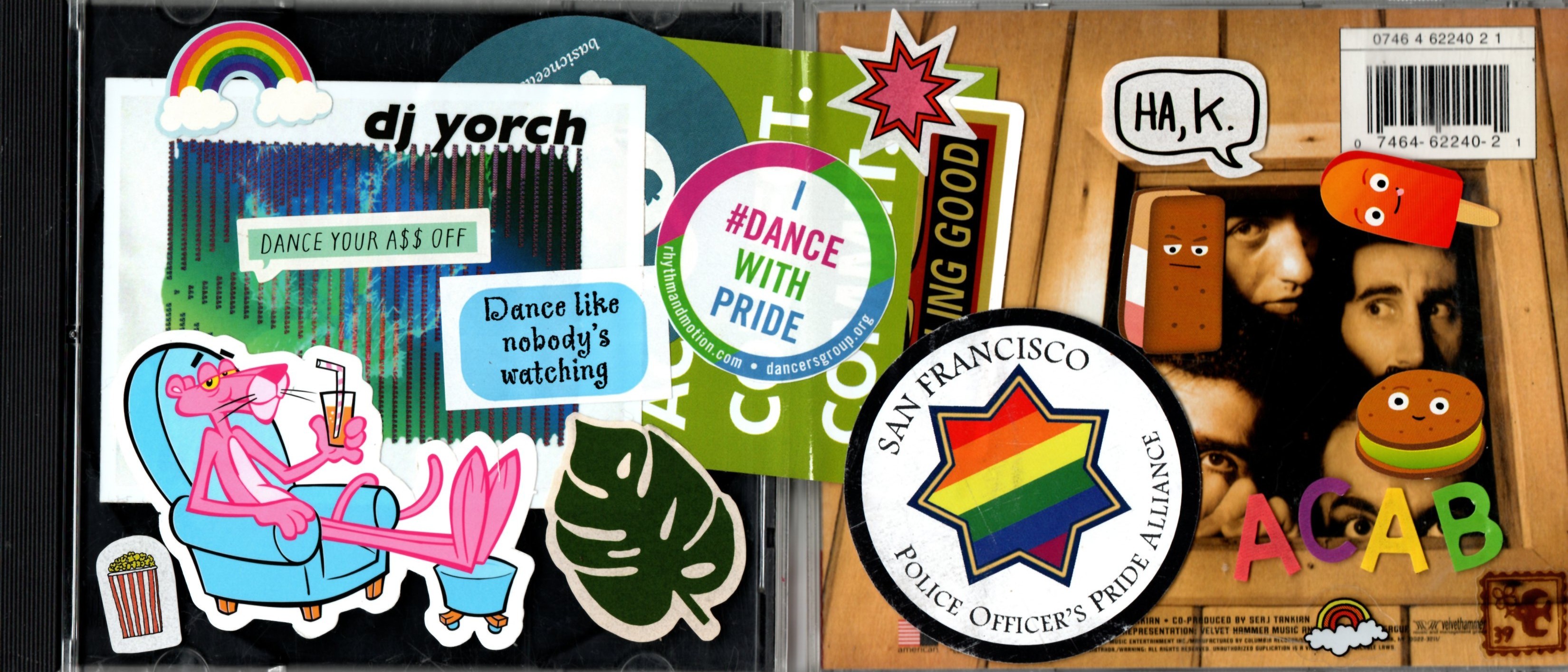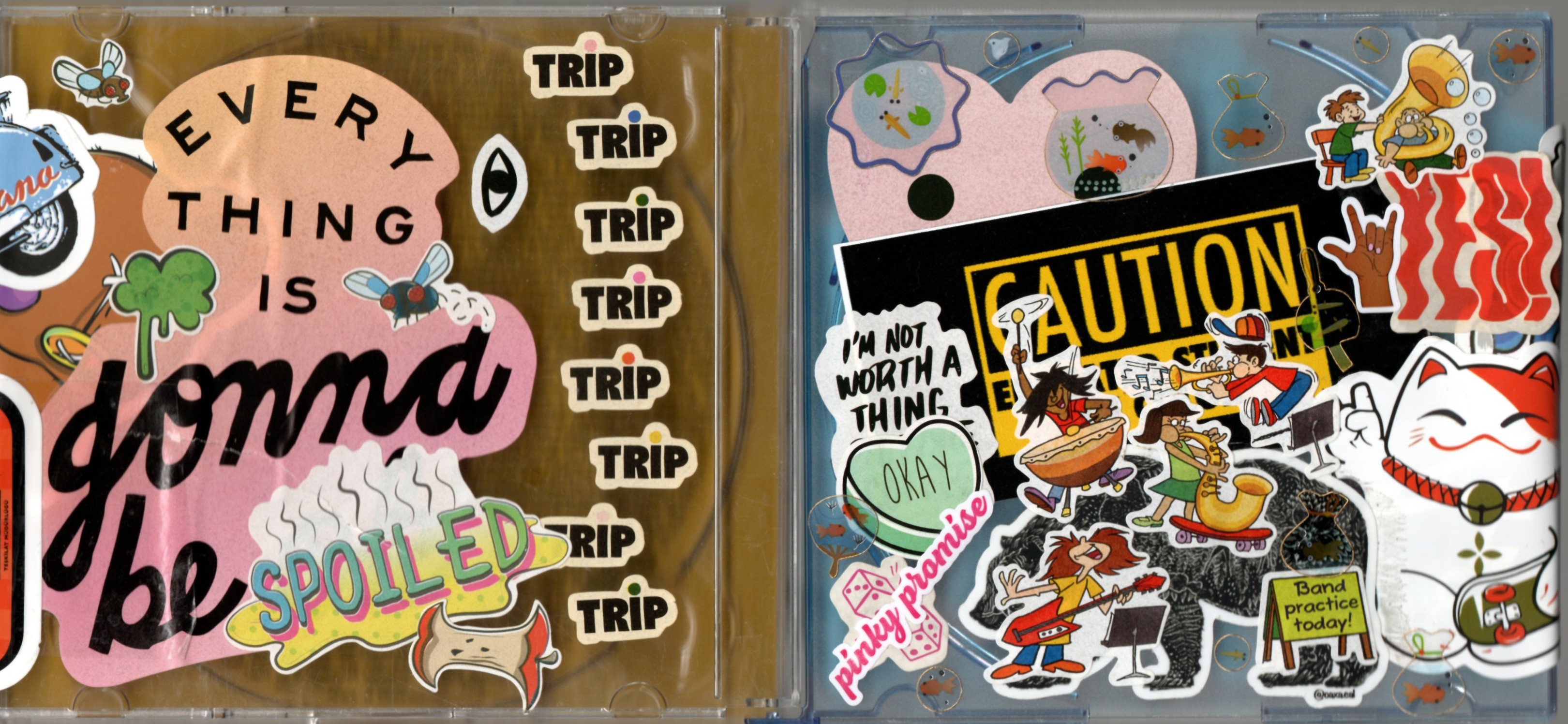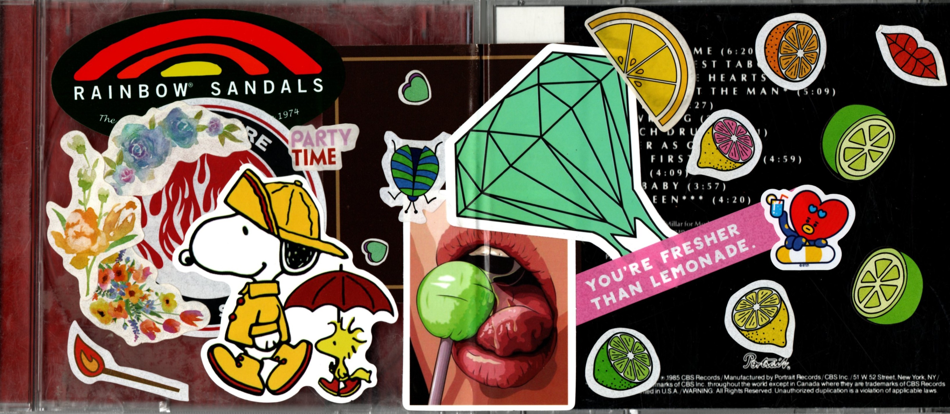 ︎︎︎ year: 2022︎︎︎ medium: stickers, cd cases, old ihome media player from my teenage