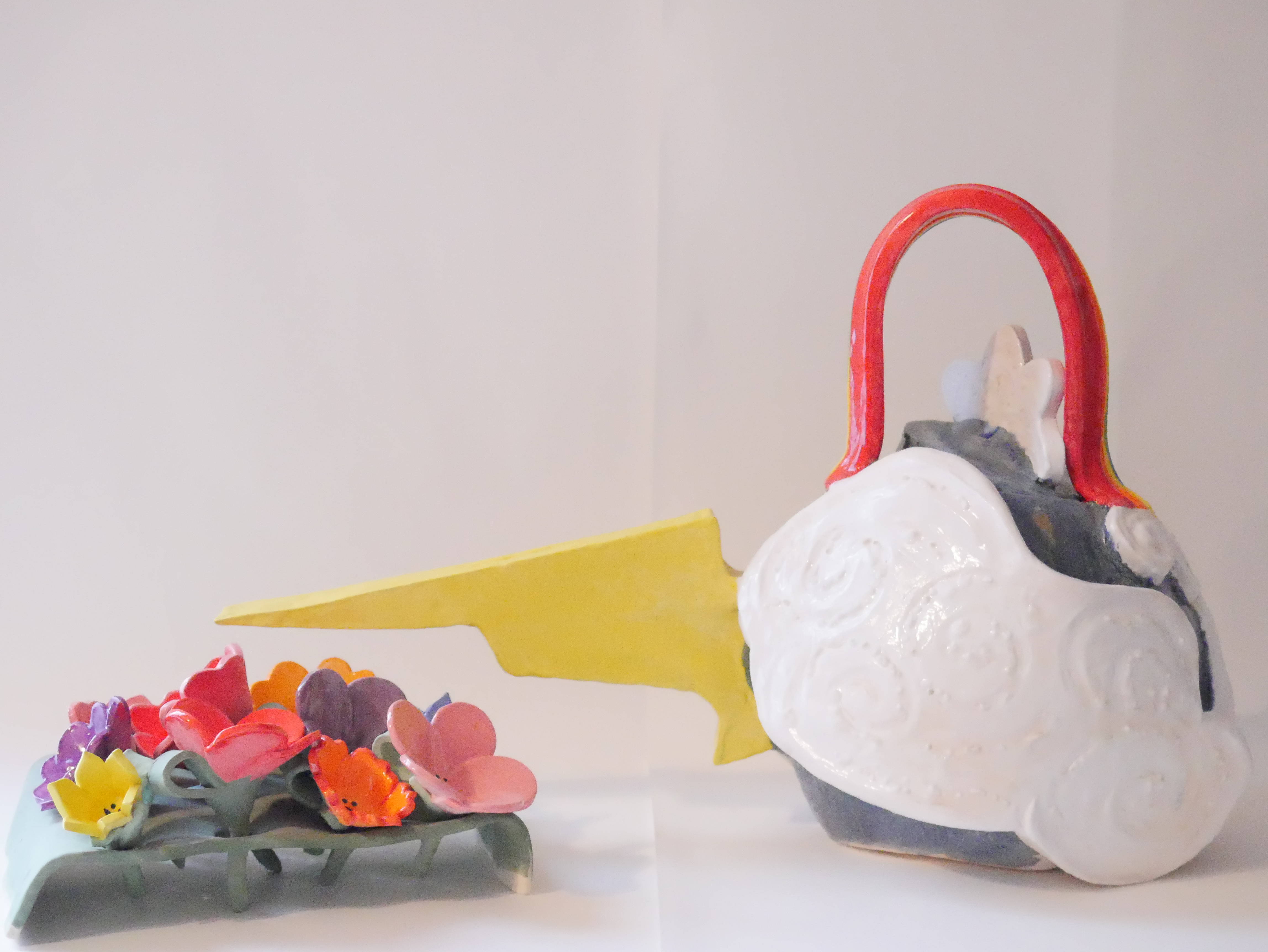 (dys)functional tea kettle and cup set -- heavy, thin, small, large, one, two or three spouts ?? -- anything goes. complex to navigate just like the daily feelings and motions of life.